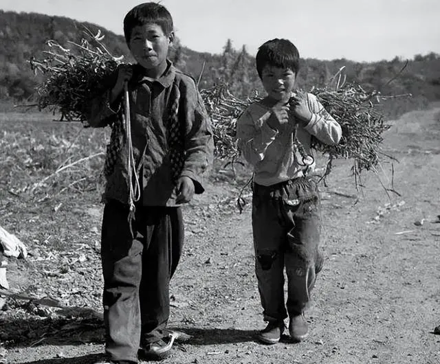 照片里的孩子,扛着柴火回家,身上的衣服补丁摞补丁,可谁在乎这些?男娃女娃都是脏兮兮、精精神神的样子。冬天棉衣不够厚,就裤脚扎带子、腰间再扎根布条,北方孩子还会套上空心棉袄,冻疮都不当回事。