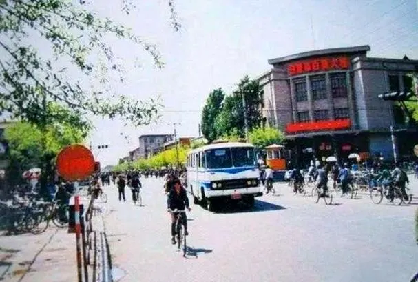 照片中,白蓝相间的老式公交车缓缓行驶在马路上,这是当年市民出行的主力,车身上或许还印着熟悉的线路编号。街道上最热闹的当属自行车流,永久、凤凰牌自行车密密麻麻,清脆的车铃声此起彼伏,骑车人的身影穿梭其中,构成了“自行车王国”的独特风景线。