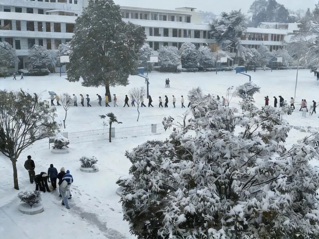 这些白色的是雪,没错,尽管属于广西,但资源县是会下雪的。2003年时资源中学雪景↓