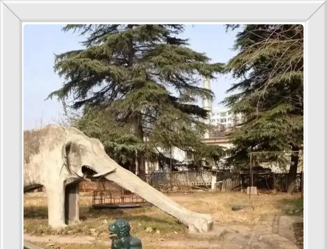 这个水泥家伙叫大象滑梯,鼻子就是一条长溜,灰扑扑的身上被裤腿磨得亮,轮到谁就从耳朵后头爬上去,屁股一挪就往下飞,鞋后跟蹭得冒火星似的,奶奶在树荫下招手说慢点慢点,等你上了小学再从高口子滑,现在游乐场五颜六色安全到位,孩子们排队也乖,可老大象不在场,心里总像少了个站岗的老朋友。