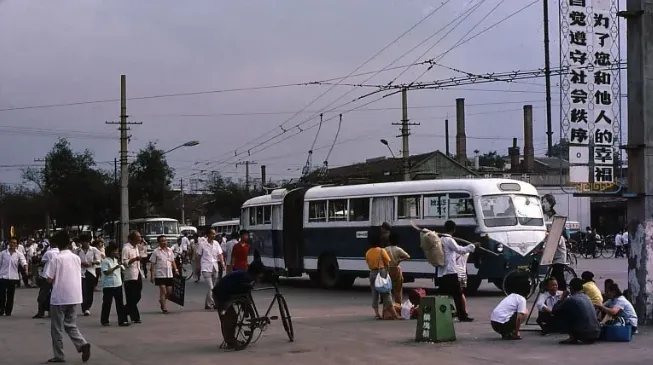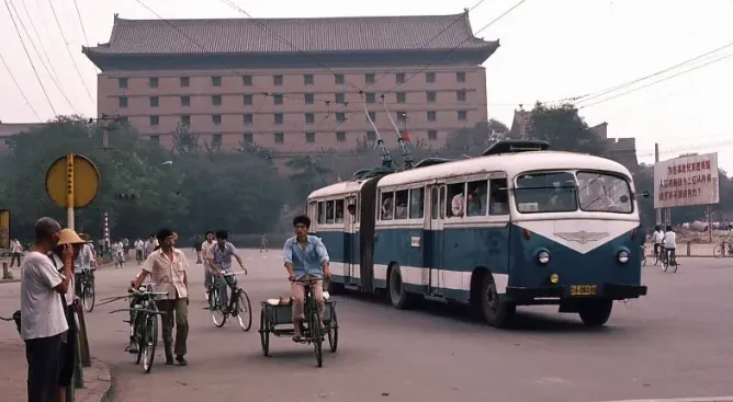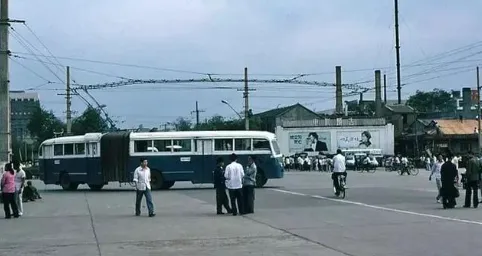 南门附近,人们排着队挤上“兰州牌”无轨电车,这个牌子如今早已淡出人们的视野;