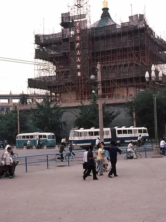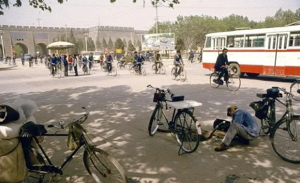 1983年的西安,已经能看到不少小轿车,只是看不清具体品牌,那个年代私家车并不流行,大街小巷还是以自行车出行为主,叮铃铃的车铃声,是当时最熟悉的城市背景音。