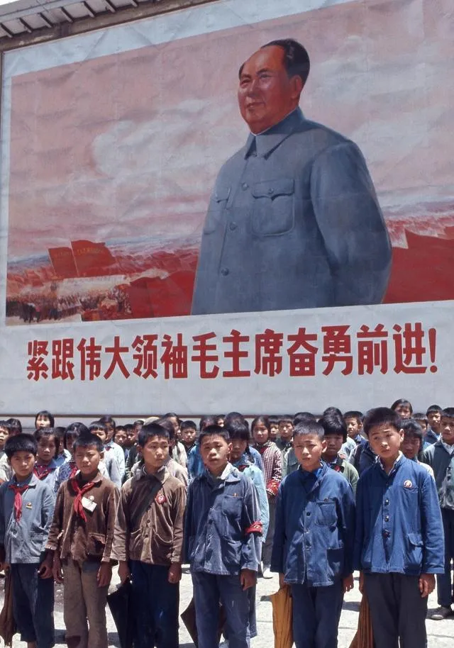 这张照片熟悉极了,背后是一面大主席像和标语,小学生扎堆整整齐齐站着,胸前飘着红领巾,那会儿学校搞活动,谁都得列队,举着手高喊口号,哪怕阳光晒得脸红脖子粗,也没人喊苦,学校门口老大爷总叮嘱:“站直喽,别掉队。”