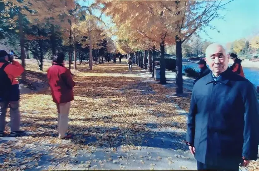 出圆明园南门的银杏大道时,落叶满地金黄。游人举着相机,父亲也站在树影里,阳光吻着他的白发,温和沉静。