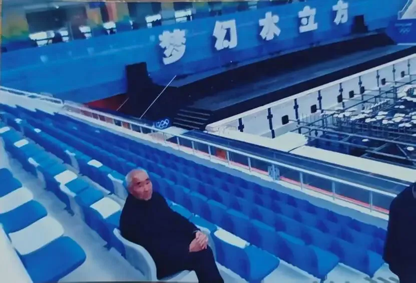 后来到了水立方,澄澈蓝晕裹着场馆,父亲坐在蓝白座椅上望着泳池,目光柔和:“从前在电视里看水立方,总觉得像梦一样,如今摸着这些新座椅,才觉得这一切都是现实。”