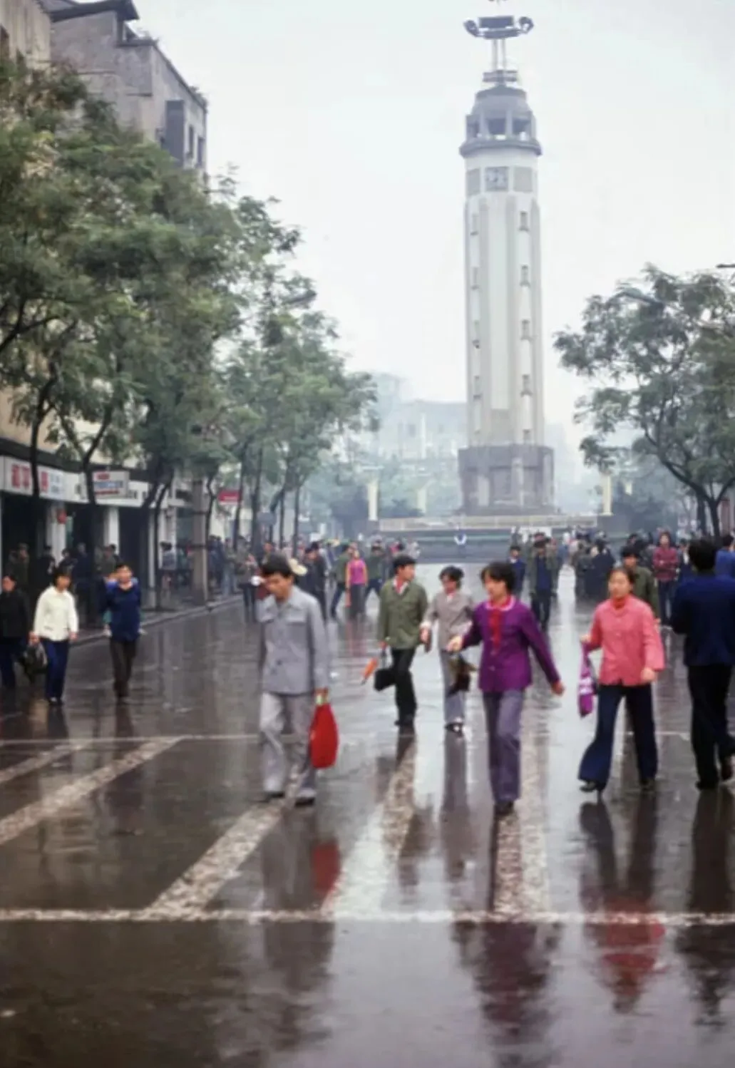 那时候的解放碑,还不是如今的繁华商圈,周围矮房子围着,街上行人慢悠悠,自行车叮铃铃穿过,没有拥堵的车流,只有简单又踏实的日子。