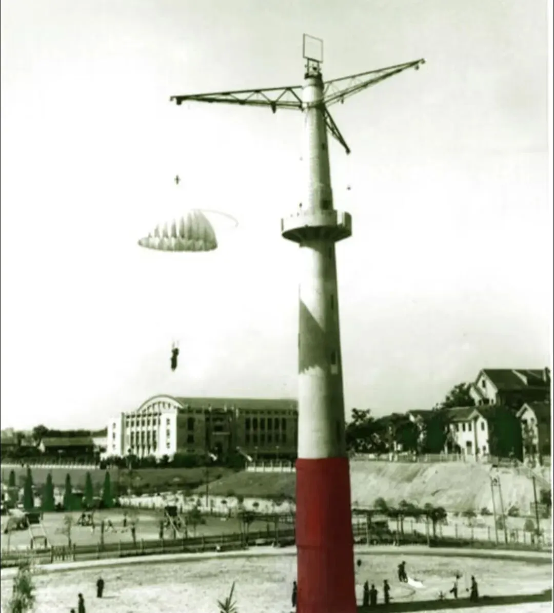 伞塔,建于1942年,是中国第一座跳伞塔,也是当时远东地区最高、设备最好的跳伞塔,其主要功能是为抗战培训飞行员