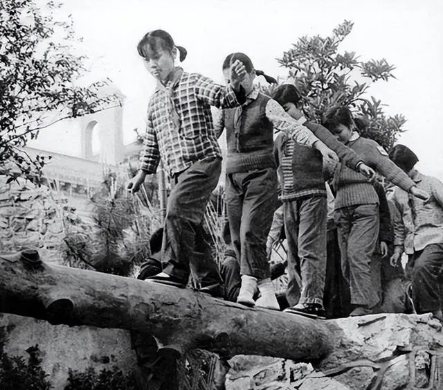 小姑娘站木墩头,前后拉着手,木桥其实就是根大树干搭在沟壑上,雨后滑得厉害,谁过都一边喊一边笑,有胆大的松开手自己走,小时候摔了裤子划一道,妈妈咬牙切齿,“稳点啊,别嫌慢”,现在操场上的爬杆再齐也没人敢这么玩,一群小伙伴全靠互相拉扯,这份胆量真是用不完。