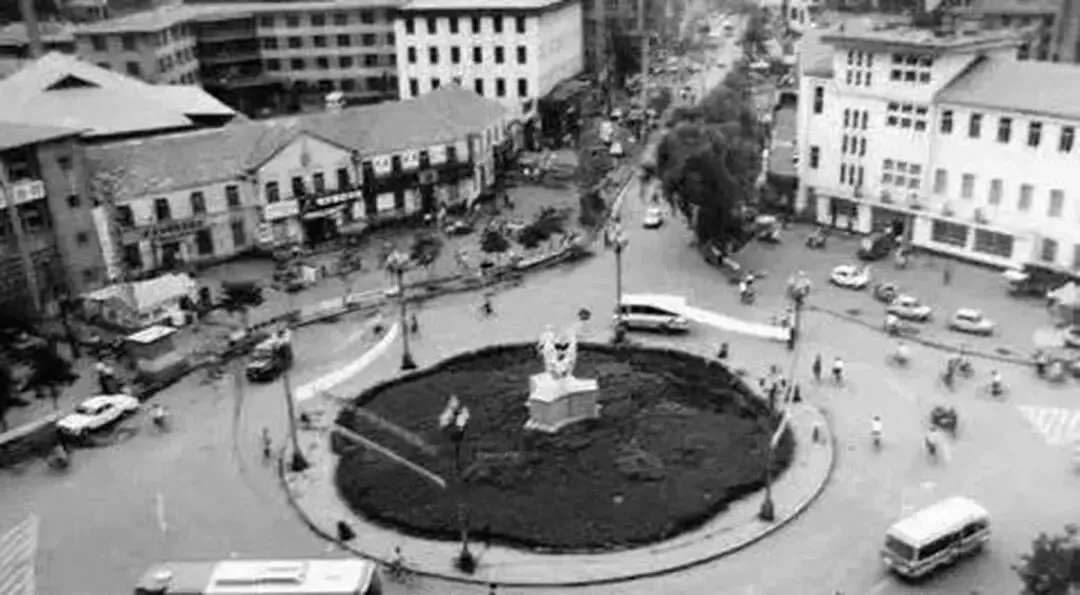 老通化人看到这张照片,心里准会一暖。这是上世纪八九十年代的转盘街,当年城里最热闹的地界,藏着几代人最鲜活的市井记忆,车来车往间,全是抹不去的烟火气。那时候的转盘街,是妥妥的城市心脏。圆形转盘立着老雕塑,公交车慢悠悠绕圈穿行,自行车流挤挤挨挨,车铃声、叫卖声混在一起,热闹得很。周边商铺、小摊挨成片,人民邮政、东方红剧场就在附近,抬头还能望见玉皇山的轮廓,逛上一圈,满是踏实的生活味。小时候总爱跟着长辈来这儿转悠,买根烤串、逛个小店,看人来人往,觉得格外热闹。没有繁华商圈,没有精致装修,可那份热热闹闹的人情味,却刻在了骨子里。如今转盘街早已变了模样,老建筑、老摊位都成了回忆,可这张老照片一出现,瞬间就能拉回那些慢时光。它不只是一条街,更是老通化人心中的烟火坐标。你在**老转盘街**留下过哪些回忆?有没有逛过街边的老铺子?5通化浑江畔