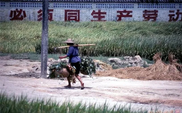 这个挑着担子的身影,打小就这么干活,一根竹竿,两头一篮子,插秧收菜全靠肩膀,夏天戴顶草帽,地里汗水一身,鞋子踏在田埂上鞋后跟都踩瘪了,墙上的标语“必须同生产穿针引线”,每回妈妈回到家,第一句总问“今天累了不,咱晚上喝玉米粥行不”,那时候家里一年到头没什么富余粮,天一黑只想早点歇歇,膀子和腿都比城里人结实。
