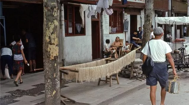 老街道上的木架子晾着面条,远远一看像挂着白布,大碗宽面,放在锅里一烫出来就是烟火气,做面条的师傅胳膊上裹着麻布巾,碗里撒一把葱花,还能闻到淡淡的碱水香,夏天晾的面,冬天晾棉被,小孩在巷子里打闹,老太太在后头喊“别碰着咱家的面”,现在超市买一包挂面不带犹豫,那时全凭手艺活呢,吃一口是时间和手劲的味道。