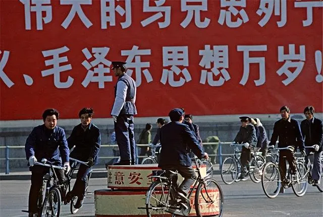 骑车的人一水深蓝布衣,全车都是“二八大杠”,中间的交通岗是交警叔叔的主场,一身制服站得笔直,前面是一块标语牌子,路上的人谁都规规矩矩,不敢闯红灯,那时候自行车是大件,家里添上新车得全小区人都来围观一番,有人还在把横上挂个铁铃,一摁“叮铃”就是本地标配。