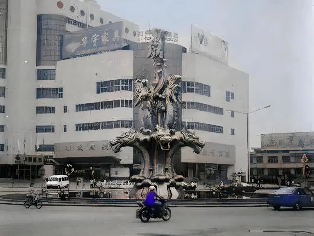 九龙柱,曾经的诸城坐标,礼拜天喷泉开放。