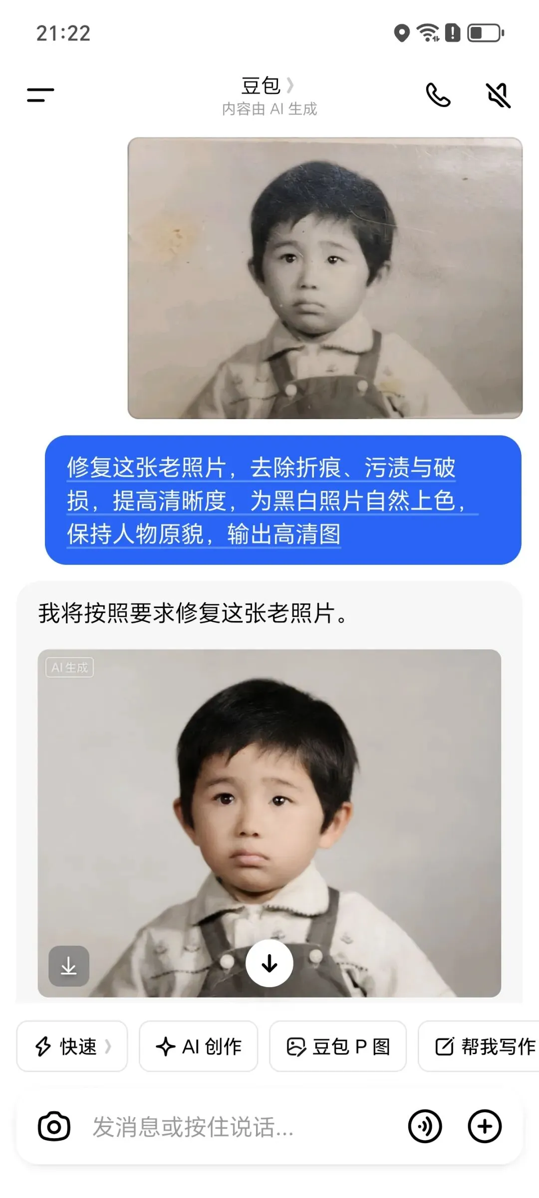 这一期,我AI万能秘籍分享给你。不用昂贵的设备,也不用精通复杂的PS,只需一部手机,打开豆包AI,就能一键唤醒时光: