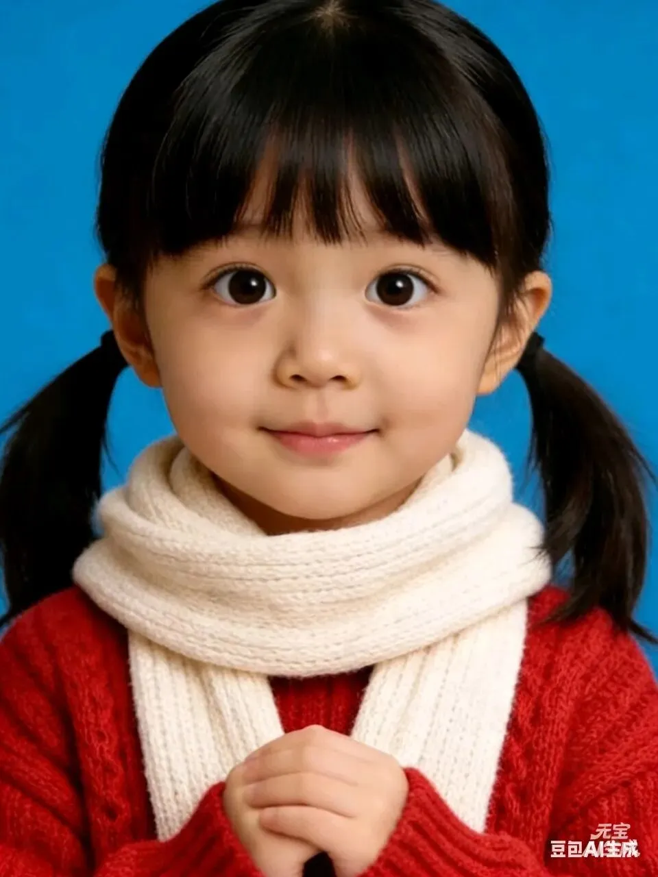 输入“帮我生成图片:照片上的女孩微笑自信表情,人物发型衣服保持不变。原比例。”