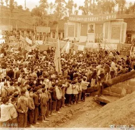 1970年的富顺县红卫广场,富顺人民热烈庆祝建国21周年。