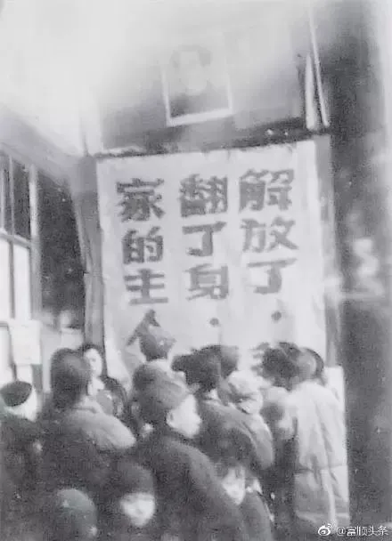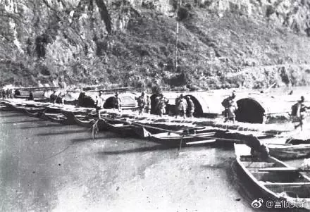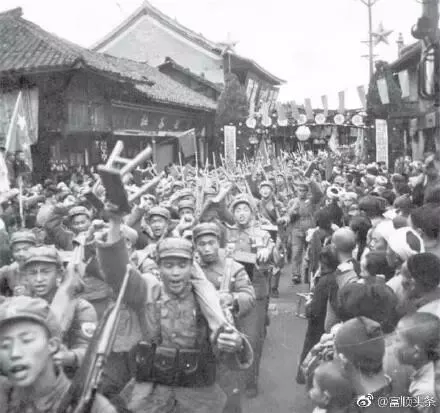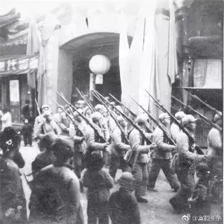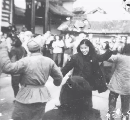 1949年12月5日,解放军整装进城,富顺换新天。图1为解放军部队由东街过浮桥进入富顺县城;图2图3为解放军进入县城,整装穿行;图4为解放初期富顺县城随处可见的欢庆标语。