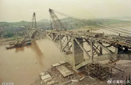 牛佛沱江大桥全长463.34米,于1991年10月建成通车,当时牛佛镇还归属富顺县管辖。图为大桥建设中。