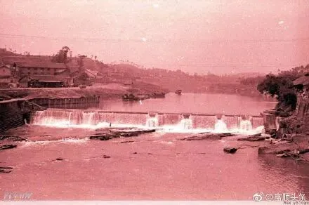 关刀堤是沱江在富顺县城北门的一拦河堤坝,清同治十二年建造,高约7米、长30米,形似关云长的青龙偃月刀。沱江激流在此改变势头,放慢速度,绕过县城东门、南门,奔西而去,素有“富顺都江堰”之美誉。图为70年代的富顺关刀堤。
