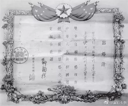 新中国成立后颁布的第一部法律《中华人民共和国婚姻法》于1950年5月1日起施行,1950年9月开始大力宣传贯彻男女平权和婚姻自由。1953年2月,富顺县第十一届各界人民代表大会决定,在全县开展贯彻《婚姻法》活动月活动。图1为当时的露天表演,图2为1956年富顺县的结婚证。
