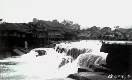 一张贡井平桥瀑布老照片,张佐周摄于1934年。作为富顺县和荣县的交界处,历史上贡井在两者之间多次徘徊。