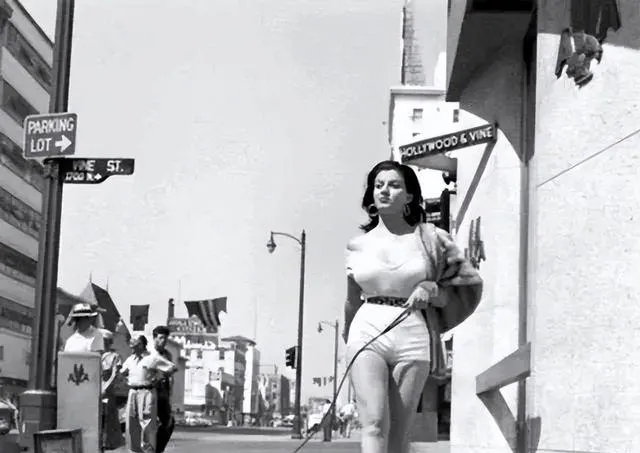 这张人行道上的女士挽着皮草牵着小狗,店招和路牌全是英文阳光把影子拉长,她走得自信路边人回头看,我外婆笑说年轻时也学人裹大波浪被风一吹就乱套,现在一个发卡就能收拾住底气却不见得有她足。