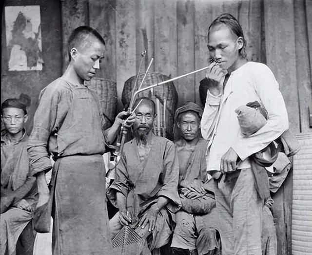 这张围坐的人在抽大烟长嘴杆子搭在手上火苗一凑人就迷迷瞪瞪地飘,屋后墙上贴着褪色年画,我叔公摇头说这玩意儿害人不浅家都能掏空,现在戒字写得大路也多不到末路别伸手,这话重但得留着。