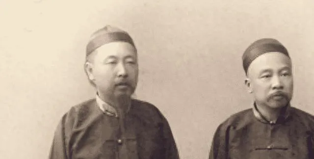 这俩人并肩站着穿着官服,长袍窄袖帽沿压得低,胡须修得顺溜,站姿笔直得跟门框似的,我爷爷指着说名字不重要,重要的是一站就知道谁说了算,现在这些都成了史书里的脚注,可衣角上的扣子却还跟新的一样亮,那个年代的规矩和讲究,全在这一张照片里了。