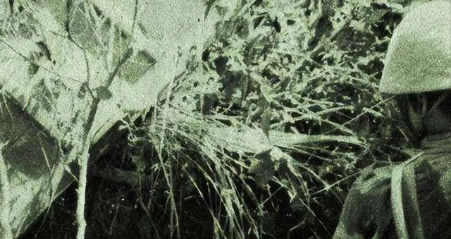 这团凌乱的枝叶边上全是扫射过的痕迹,叶茬子像被火燎过,照片里风都不敢动,我外公说那阵子出门要看天看路拐弯先屏一口气,现在讲和平讲规则,这照片能把那份惊惶留下来也算给后人提个醒。