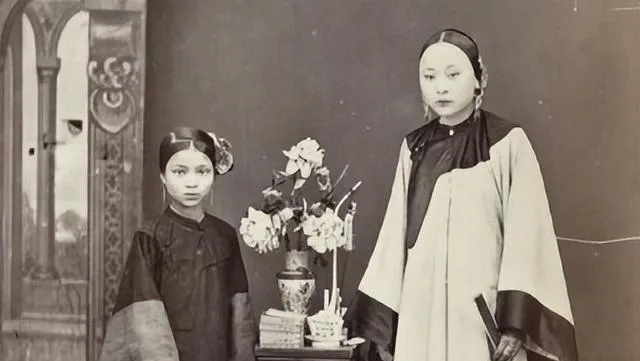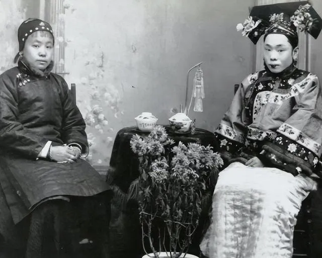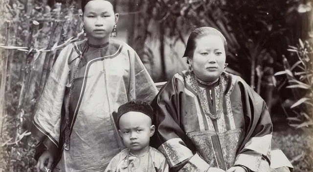 这张屋里打光平平的合影,图中高者是妻,矮者是妾,衣料一厚一薄,袖口纹样也不一样,站位却分明,旧规矩就落在这种不响的细节里,那时候家里人说起“正不正”的事不抬嗓门,话却硬,搁现在看着心里发紧。