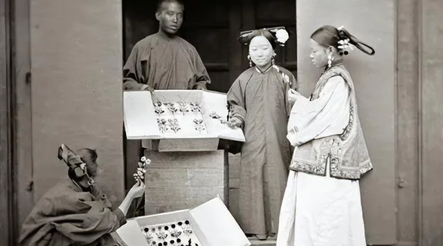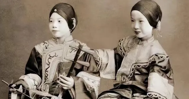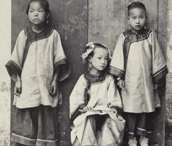 这三个小姑娘站成一排,身高差不大,眼神却不一样,中间那位坐着歇脚,衣领绣花最细,据说身份也不一样,一张小小的照片把“嫡庶之分”摆在眼前,那时候是常识,现在成了故事。