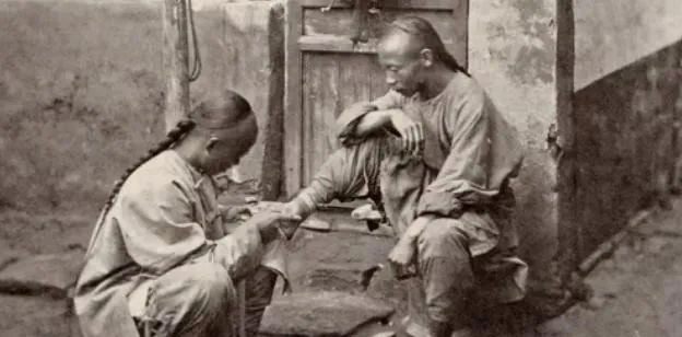 这位街口师傅擅长挽辫子,木刀片利得很,手一推一收,发根干净,顾客乐呵着照水缸当镜子,太阳一偏,辫梢晃出一圈亮,后来人把辫子剪了,师傅也改了手艺,剃头挑子还一扁担挑着走。