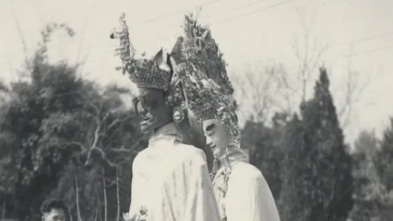 这回请神出游,顶冠高,脸谱白,衣裳素,队伍绕村走一圈,前面锣鼓慢慢敲,后面孩童跟着学走步,香烟直上,许愿的悄悄合掌,心事装在袖子里一路带着。