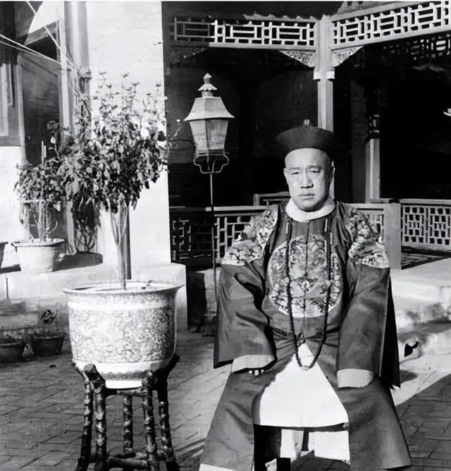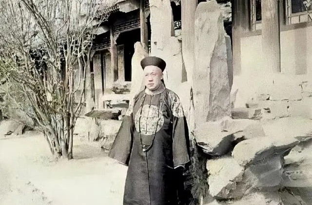 这两张院里的像是肃亲王晚年的模样,石假山后树枝稀,衣纹厚重,站与坐都显得憨直,传说多,照片少,真模样往往平常,权势退去,院子还在,人却显得小了一号。