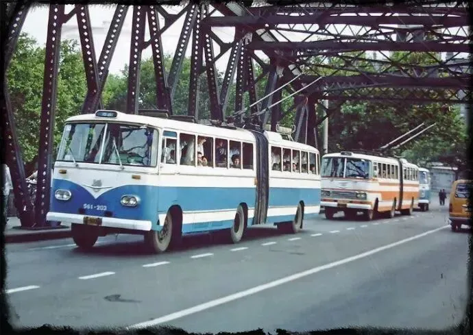 修电车,车上坐着带孩子的乘客看起来好开心,被他的笑容感染了!福佑路河南路口东望