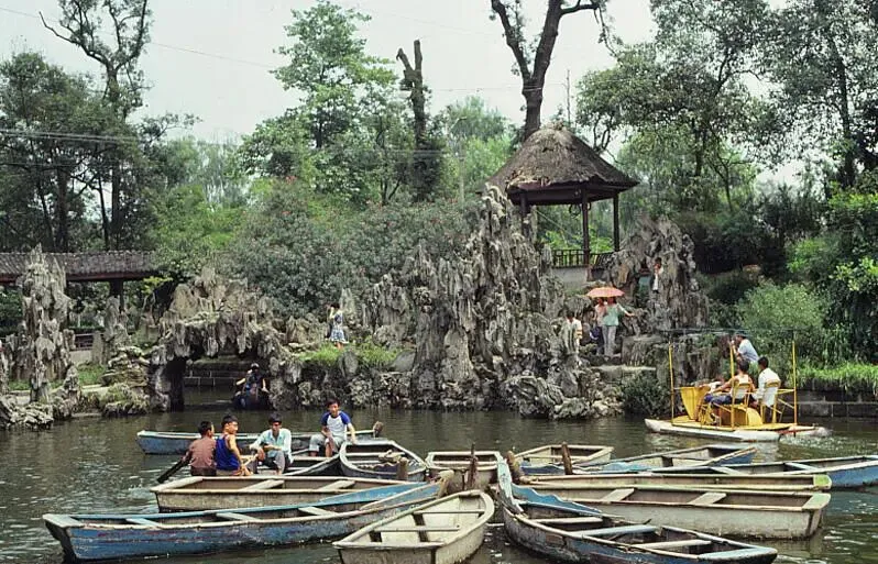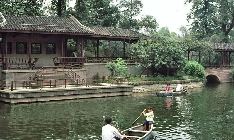 那些刻在记忆里的地方:郫都区一中,80年代的校门简约朴素,旁边的游泳池,夏天最热闹的去处,那是无数人的童年欢乐;新都桂湖公园,这座始建于初唐、因明代才子杨慎而得名的川西名园,当时已是市民休闲赏景的好去处,园内亭台楼阁错落,荷塘桂树相映,是87版《红楼梦》“大观园中秋夜宴”的取景地,满满的诗情画意。