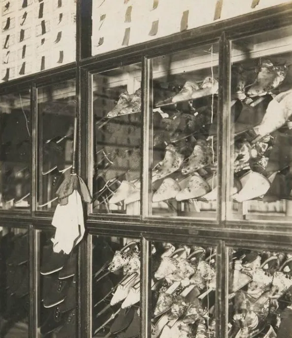 这个场景是卖小脚鞋子的店铺,玻璃柜里一排排小鞋挂着,尺码几多都是三寸来回,掌柜备着针线和软尺,来客把裹脚布一解,他就量脚弓的弧,顺手比划鞋头翘度,奶奶说,做鞋的师傅心最细,针脚不服帖,脚面就要磨破皮。