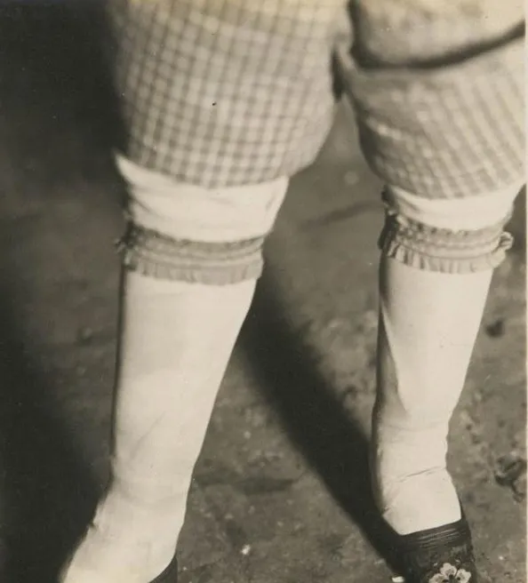 最后这张,长袜从小腿到脚背平平整整,最下面是一只绣着小花的尖头鞋,走路时要外八一点,脚掌点地,膝盖微屈,步子小而碎,远看像“挪”,近看全是忍。