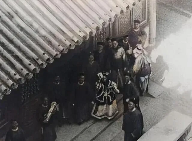这个长檐压得低,筒瓦一溜一溜把天光挡住,石阶边站着一群人,衣摆拖着风的那位是主事的,袍子滚边细密,袖口能塞半只手炉,一旁小太监提着匣子垂着眼,台阶灰扑扑的,有人刚踩过留下浅印,奶奶看这种照片总会嘀咕一句,以前热闹归热闹,心里可一点不踏实。