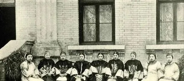 一排女子沿着台阶坐齐,衣摆前缘叠了硬边,绣线压得稳,鞋头翘着尖,姿态带着拘谨,脸色却白净,窗下的影子被砖缝切成细条,奶奶说那会儿讲究小步碎步才显秀气,可走起路来疼得拧眉,现在想想,只盼女孩们走得更舒服一点。