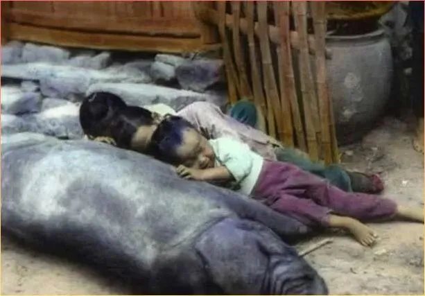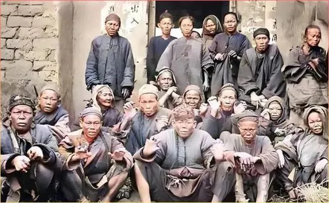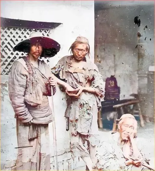 这是一.群.穷人的合.影,他们穿.着破旧的衣衫,面.容憔悴,眼神.里透着麻木。晚清时期,底层百姓的日子.苦到了骨子里.,一家老小挤在一起,.只为能有个活下去的念想。