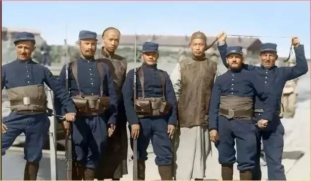这.张照.片更让.人气愤!几个洋人士兵.站在一起,中间却牵.着两个中.国百姓。看他们的姿.势.和神.态,就像牵着牲口一样,这是何等的屈辱啊!那个年代,国家积.弱,洋人在中国的.土地上为所欲.为。