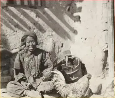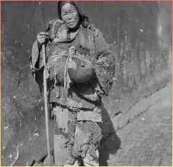 这是.一个乞丐抱着孩.子的照.片。母亲衣衫褴褛,怀里的孩子瘦得皮包骨头,她们的眼.神里.满是绝望和无.助。晚清时期,这样的乞丐遍.地.都是,能讨到一口.饭吃就算是幸运。
