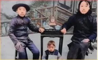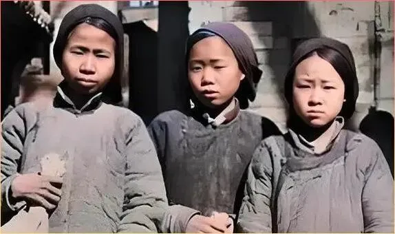 这.是三个晚清的女孩子.,.她们穿着当时的传统服饰,神.情.木.然。很可能就是童.养媳或者丫鬟.,命运早已被安.排好,根本没有选择的权利。