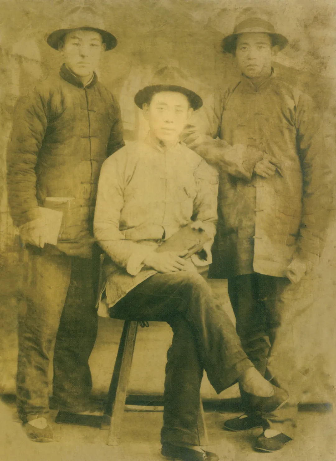 抗战初期“三只虎”合影,左为仲照明(1920—2001),中为刘洪范(1918—1980),右为张增庆(1904—1963)。(党史研究室 / 提供)