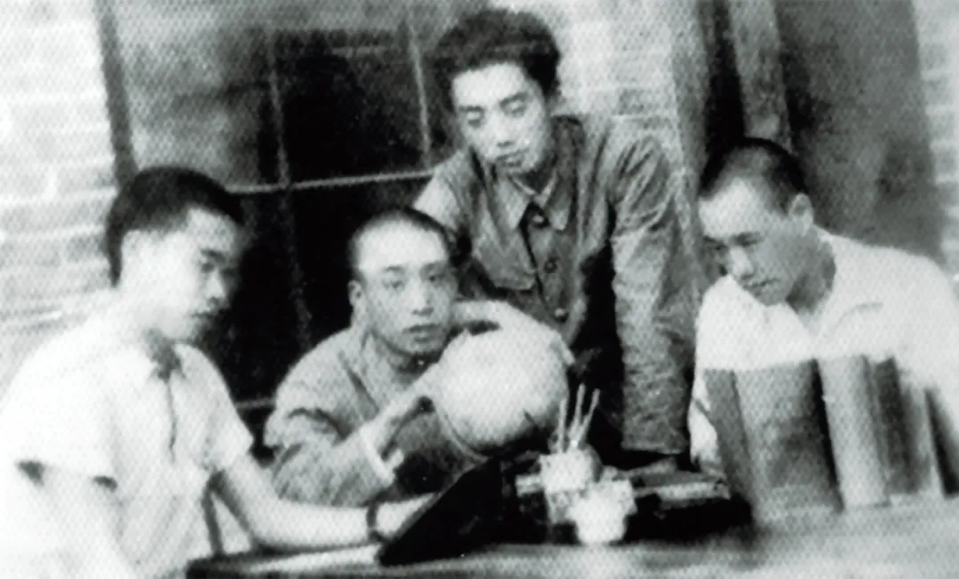 打入日伪县立中学的中共地下党员及积极分子合影,左起:马紫枫、马广浦、尚之四、耿文华。(平度一中 / 提供)