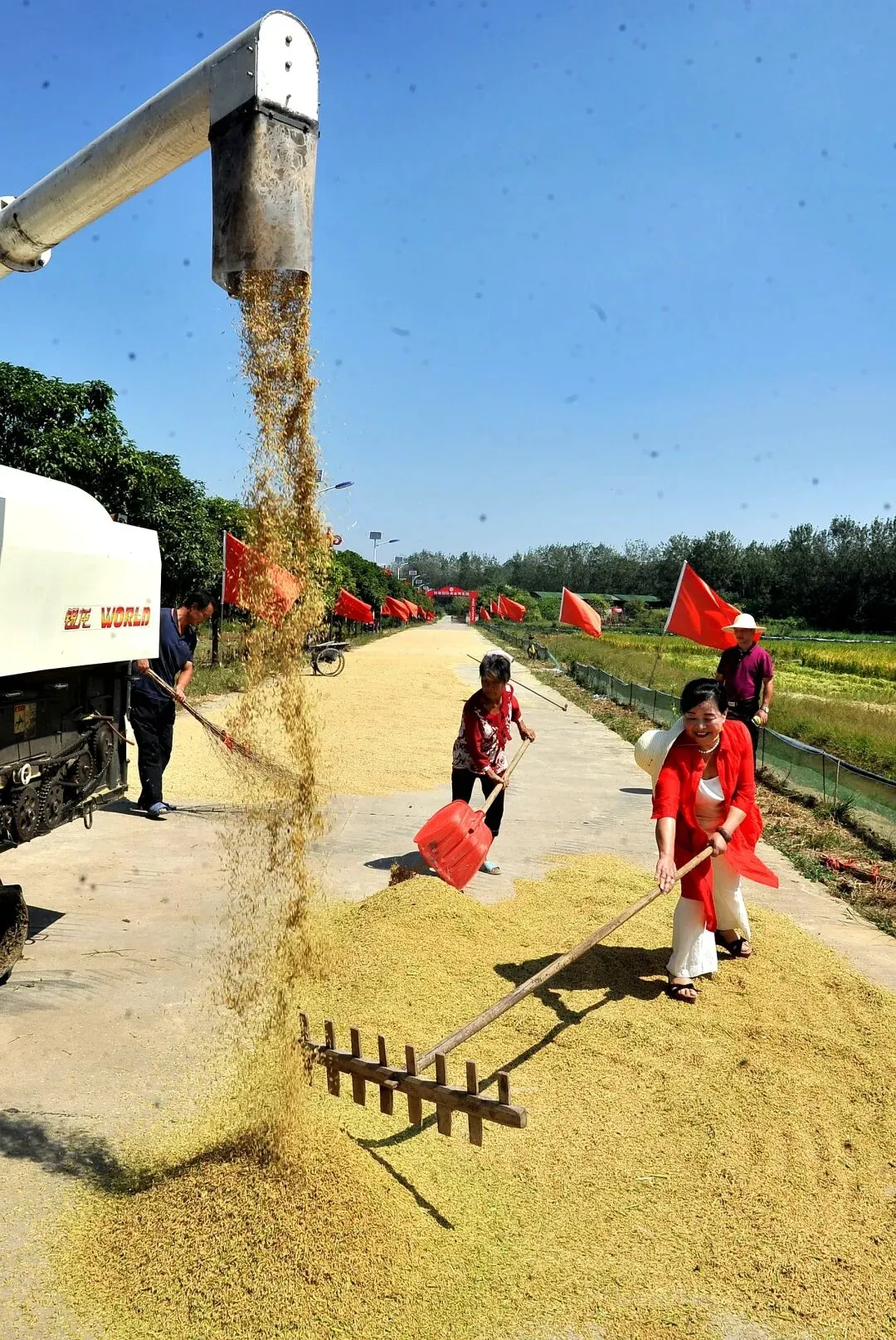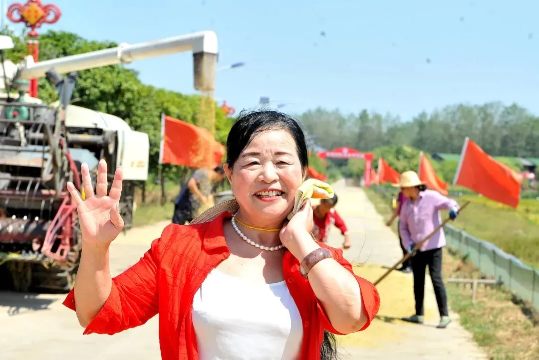 每年看着连片稻田从青绿变金黄,听着农机轰鸣奏响丰收乐章,她脸上总会洋溢出满足的笑容。