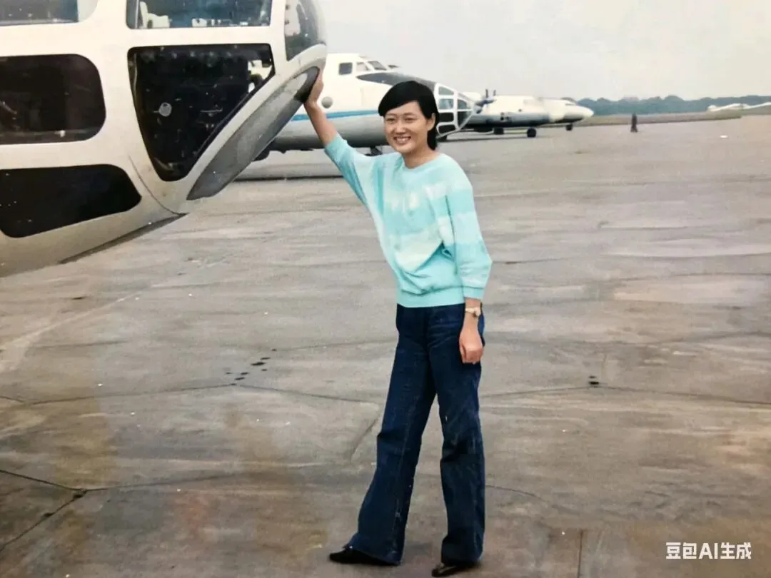 站在飞机旁的姑娘,穿着淡蓝色的毛衣,牛仔裤洗得发白,笑起来眼睛弯成月牙,浑身透着藏不住的朝气。站在飞机旁的样子,是不是有点“飒”,那是刚从军校毕业的年纪,眼里有光,身上有劲儿,对未来满是憧憬。