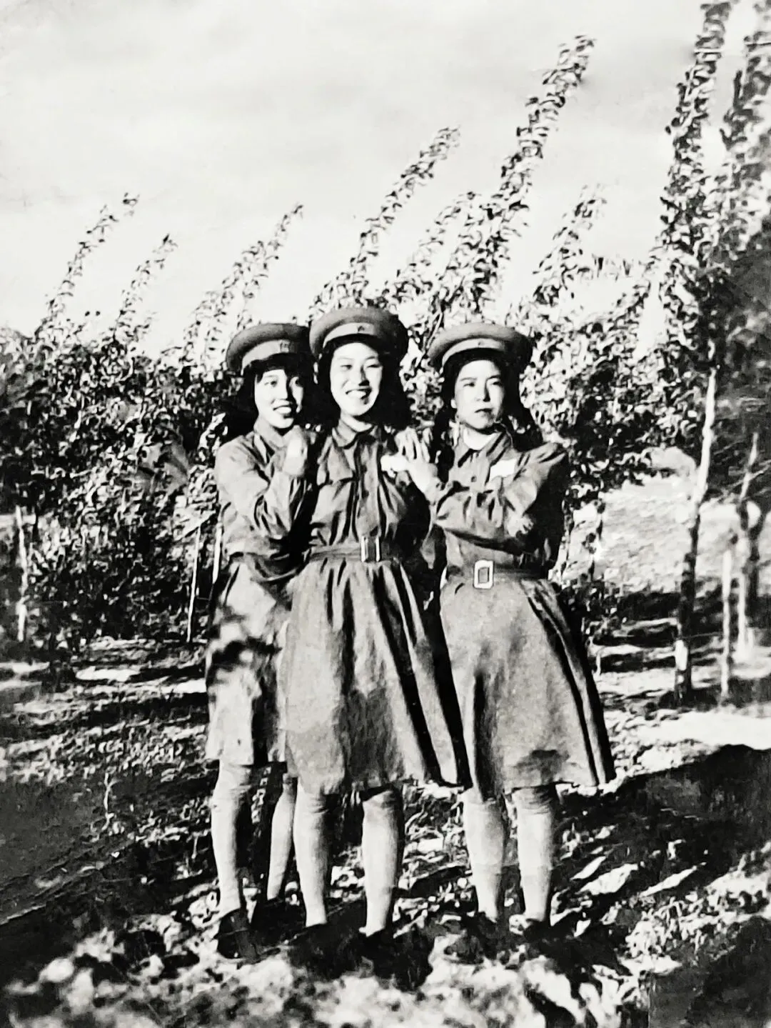 1949年,母亲张今慧(右)和文工团战友在张家口合影。邢小群供图