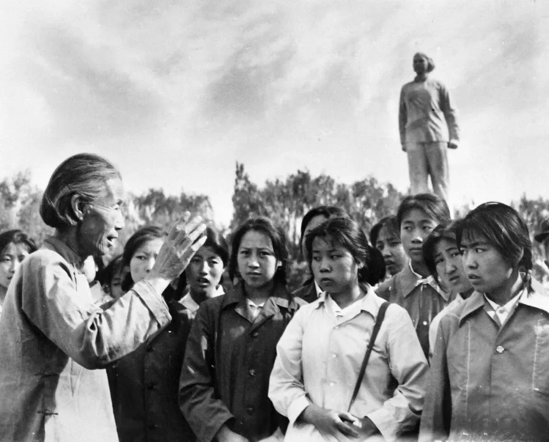 1985年,刘胡兰的母亲胡文秀为学生们讲述刘胡兰的英雄事迹。王学礼供图